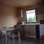 Domek alpejski obejmuje kuchnię z kuchenką mikrofalową i lodówką.